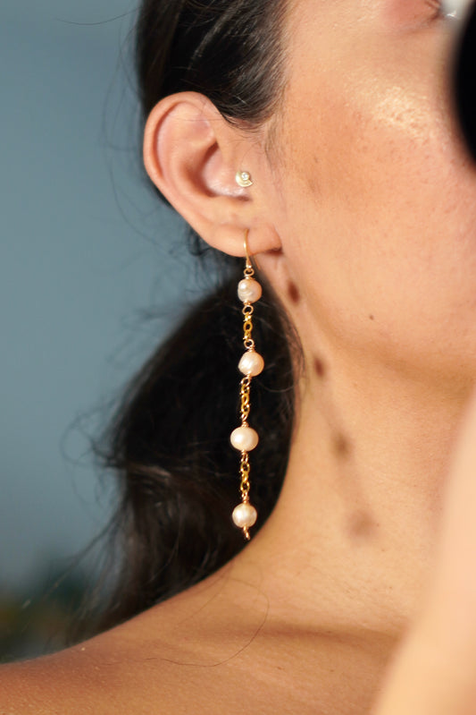 chain link freshwater pearl dangle earrings